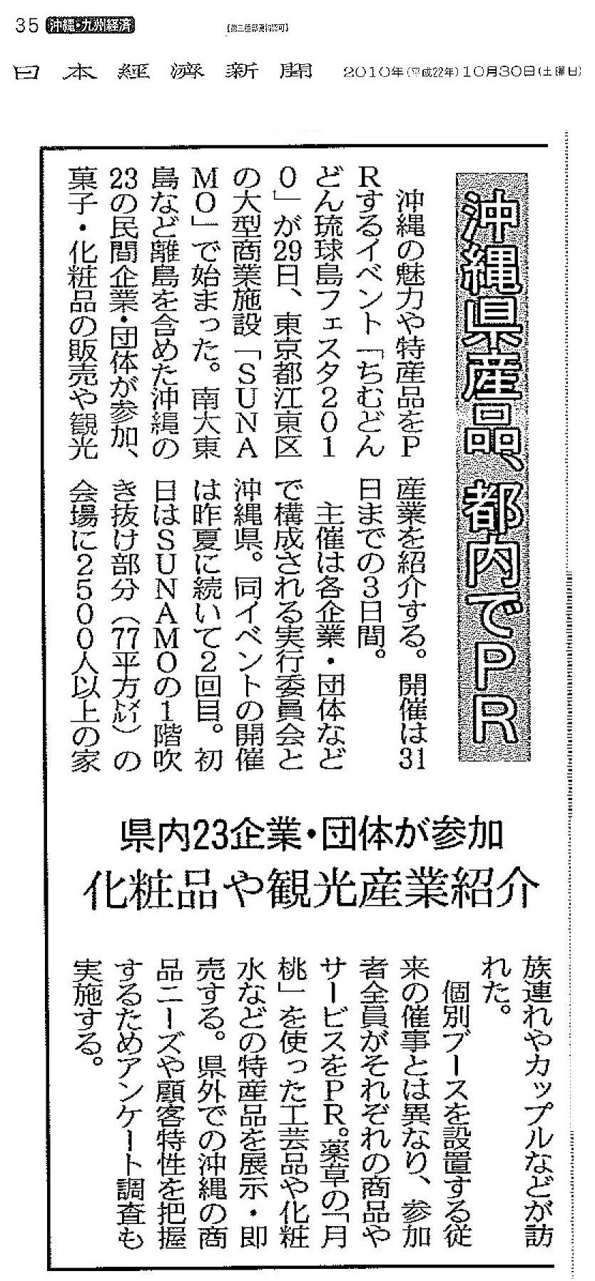 ▼2010年10月30日(土) 日本経済新聞 沖縄・九州経済35面